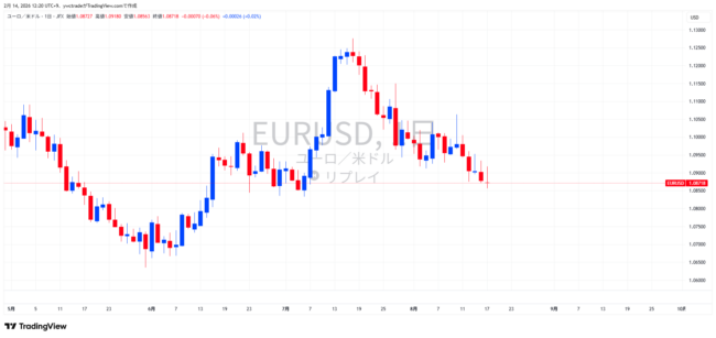 もし、ユーロドル(EUR/USD)の日足チャートを見た時に、以下のような相場状況だったとしましょう。