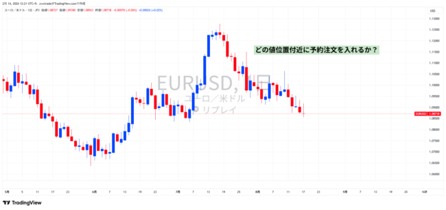 そして、トレンド相場だと判断した通貨ペアを見つけたら、次は「どの値位置に予約注文を入れるのか?」を決めていきます。